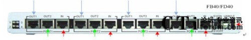 OpenVox的FB40\FD40單機(jī)面板接口包括BRI\PRI接入口(IN)、用于連接主服務(wù)器E1接入口(OUT2)和用于連接備用服務(wù)器E1接入口(OUT),USB口用于連接主服務(wù)器,開(kāi)關(guān)用于切換電路狀態(tài),(可以手動(dòng)或者通過(guò)命令行進(jìn)行切換),如圖所示: