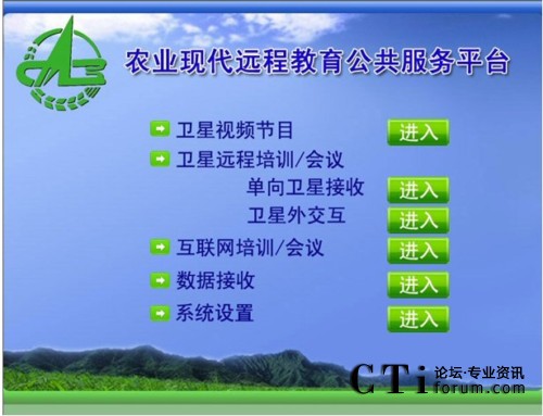 會議所使用的農(nóng)業(yè)現(xiàn)代遠程教育平臺將先進的多媒體寬帶DVB衛(wèi)星通信系統(tǒng)和全面的網(wǎng)絡(luò)遠程教育培訓(xùn)/會議系統(tǒng),天(衛(wèi)星網(wǎng))地(互聯(lián)網(wǎng))合一,集成廣播、電視和網(wǎng)絡(luò)的功能,形成了廣覆蓋、大容量、多功能、低成本、快捷高效的遠程教育培訓(xùn)網(wǎng)絡(luò)、技術(shù)培訓(xùn)資源傳輸通道和網(wǎng)絡(luò)視頻會議系統(tǒng),是面向“三農(nóng)”開展多形式多層次現(xiàn)代遠程教育培訓(xùn)、科學(xué)普及、技術(shù)推廣和信息傳播的公共服務(wù)平臺。該平臺包括:單向廣播式衛(wèi)星直播系統(tǒng)、雙向衛(wèi)星交互式培訓(xùn)/會議系統(tǒng)、衛(wèi)星外交互培訓(xùn)/會議系統(tǒng)(衛(wèi)星接收,互聯(lián)網(wǎng)回傳)和地面互聯(lián)網(wǎng)雙向交互培訓(xùn)/會議系統(tǒng),適用于純衛(wèi)星網(wǎng)絡(luò)和衛(wèi)星網(wǎng)、互聯(lián)網(wǎng)混合接入等各種網(wǎng)絡(luò)環(huán)境。