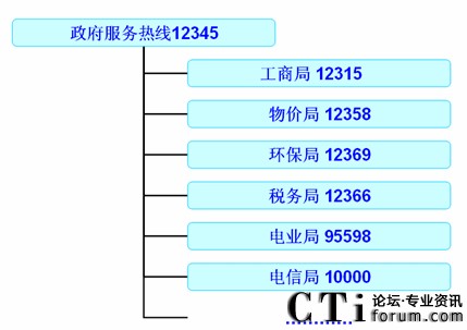 所以筆者建議政府熱線系統(tǒng)的設計目標即是為城市政府提供實現(xiàn)“一個號碼對外”的統(tǒng)一服務渠道,建立“一體化政府”,提供“一站式服務”。把市/區(qū)/縣各級部門的職能統(tǒng)一到一個服務平臺上,市民只需撥打一個電話號碼就可以方便快捷地得到一站式的綜合服務,也可查知預計所需的辦理時間以及進度。公眾事務服務熱線電話(12345、12366、12315等)與處理緊急事務的電話(110、119、120、122)一起將成為城市管理的高效優(yōu)質(zhì)電話服務系統(tǒng)。