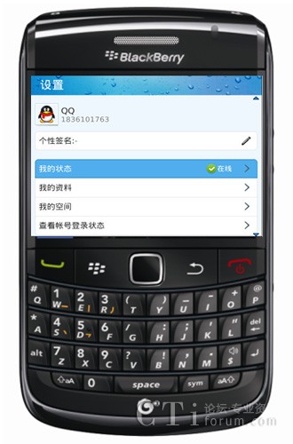 圖:通過(guò)BlackBerry® Torch™ 9800登陸黑莓QQ