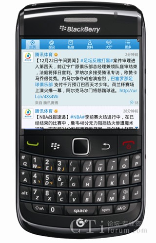 圖:通過(guò)BlackBerry Bold 9788登陸騰訊微博