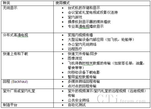 在表1中例舉出了當(dāng)前一些比較超前的應(yīng)用模式,這些模式需要更高的數(shù)據(jù)傳輸量來支持“無線辦公”的要求。
