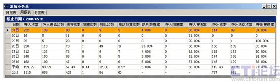主要考察系統(tǒng)分項(xiàng)業(yè)務(wù)指標(biāo),如中繼線、分機(jī)、座席員、業(yè)務(wù)組等,便于了解系統(tǒng)運(yùn)行狀況