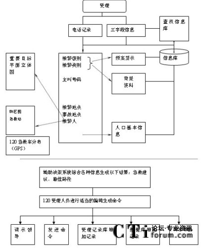 受理臺根據報警類別和報警地點等信息,判別是否是重點單位、重大事故等,如是則自動查找相關的數據庫,調出預存的急救方案,最后由120指揮長作出決策。