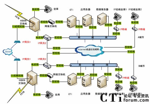 單一的呼叫中心往往是CTI+本地坐席的簡單服務(wù)模式,而在實際應(yīng)用中,由于地域分布的限制,單純的本地坐席無法滿足實際需要,需要提供遠(yuǎn)端坐席來實現(xiàn)地域之間的協(xié)作