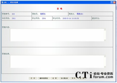 單擊某一記錄條,可彈開(kāi)相應(yīng)的記錄單,記錄單分為三種:普通電話記錄單,未接電話記錄單和呼出電話記錄單。