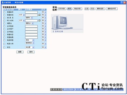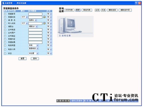 查詢:在要查詢的字段上打勾,輸入要查詢字段的信息及各條件間關(guān)系,點(diǎn)擊“查詢”按鈕,則在屏幕右側(cè)顯示相應(yīng)的查詢結(jié)果,可以對(duì)這些查詢結(jié)果進(jìn)行維護(hù),查詢條件可自由定制。