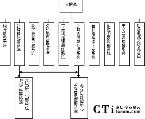 本次建設(shè)需要采用綜合通信技術(shù),將110、119、122系統(tǒng)的計算機網(wǎng)絡(luò)和有、無線通信網(wǎng)有機互聯(lián),建成集接處警信息獲取、統(tǒng)計、查詢、發(fā)布于一體,并通過地理信息和多媒體大屏幕顯示等輔助系統(tǒng)的綜合指揮調(diào)度,實現(xiàn)110、119、122快速反應(yīng)、信息共享的目的。為此,各系統(tǒng)應(yīng)分別具有下述功能: