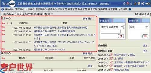 TurboCRM系統的消息中心是協同工作的核心,當客戶接觸過程有進展時,相關員工的桌面會出現消息提醒,以方便員工及時地了解客戶動態(tài)。