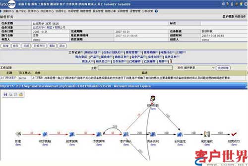 對于復雜的任務,TurboCRM系統提供了流程定制功能,不僅可以定制靈活流程,也可定制固定流程,將公司的業(yè)務流程固化在系統中,以指導員工按流程辦事。