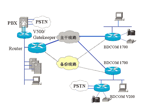 500作為Gatekeeper的Server端,V 200 作為Client端,實現語音和數據集成應用。