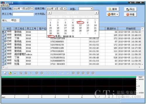 系統(tǒng)不需要額外添置任何設(shè)備,即擁有全數(shù)字化自動(dòng)錄音系統(tǒng),連續(xù)不間斷錄音時(shí)間長(根據(jù)計(jì)算機(jī)硬盤而定),容量大,同時(shí)系統(tǒng)既能根據(jù)管理員設(shè)定的參數(shù)進(jìn)行錄音自動(dòng)備份,也可對(duì)重點(diǎn)錄音文件手工備份;錄音能在任意坐席播放;同時(shí)系統(tǒng)也支持脫離系統(tǒng)環(huán)境,針對(duì)某個(gè)備份的錄音文件介質(zhì)隨意進(jìn)行查詢和回放。