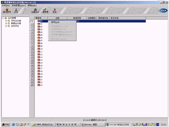 2、系統(tǒng)主界面的右邊樹型結(jié)構(gòu)是電話呼出或接入的動(dòng)態(tài)瀏覽器,包括通道號(hào),名稱,電話號(hào)碼等等。