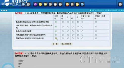 astercc的CATI問卷系統(tǒng)將問題自動彈出在坐席人員的電腦屏幕前,坐席按照系統(tǒng)提示逐步操作即可,無需復雜的專業(yè)知識,按照系統(tǒng)彈出的資料傳達給客戶,供客戶進行勾選。(坐席可以利用Tab鍵來自動切換下一題,方便坐席操作,節(jié)省時間)