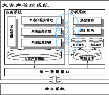 HollyAnalyzer是建立在大客戶信息平臺(tái)基礎(chǔ)上的針對(duì)業(yè)務(wù)主題、面向決策支持的系統(tǒng)。將數(shù)據(jù)倉(cāng)庫(kù)的相關(guān)技術(shù)引入,利用數(shù)據(jù)分析系統(tǒng),從基于客戶數(shù)據(jù)及企業(yè)業(yè)務(wù)活動(dòng)的歷史記錄中提煉出有用的信息產(chǎn)生標(biāo)準(zhǔn)的查詢報(bào)告,進(jìn)行大客戶分析和市場(chǎng)營(yíng)銷的輔助決策支持。分析主題主要針對(duì)客戶、競(jìng)爭(zhēng)對(duì)手和營(yíng)業(yè)及收入進(jìn)行分析,這些數(shù)據(jù)是企業(yè)非常關(guān)心的信息,有助于企業(yè)借助積累的歷史數(shù)據(jù),對(duì)其業(yè)務(wù)運(yùn)營(yíng)狀況及營(yíng)銷活動(dòng)成效做出正確的評(píng)價(jià),了解客戶行為及其趨向。
