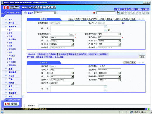 HollyC&C是HollyC6呼叫中心解決方案中蘊(yùn)涵CRM基礎(chǔ)理念的業(yè)務(wù)應(yīng)用軟件產(chǎn)品。HollyC&C提供全面的呼叫中心系統(tǒng)功能,完成“以客戶中心”的服務(wù)請(qǐng)求-> 業(yè)務(wù)處理(咨詢、投訴、基本業(yè)務(wù)受理)-> 客戶基本資料管理 -> 主動(dòng)服務(wù)(回訪、滿意度調(diào)查、電話營(yíng)銷(xiāo)),全部的CRM閉環(huán)處理流程,全程的服務(wù)痕跡得到保留,并提供完善的統(tǒng)計(jì)報(bào)表進(jìn)行數(shù)據(jù)分析, 。