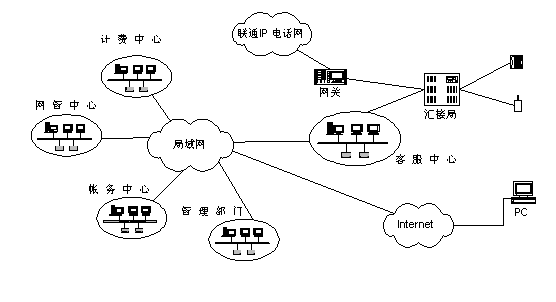聯(lián)通北京分公司將客戶服務(wù)系統(tǒng)與現(xiàn)有計(jì)費(fèi)、營業(yè)、帳務(wù)系統(tǒng)進(jìn)行組織,形成了一個(gè)有機(jī)的結(jié)合體,能夠充分發(fā)揮出現(xiàn)有系統(tǒng)的優(yōu)勢(shì)?蛻舴⻊(wù)系統(tǒng)從營業(yè)帳務(wù)系統(tǒng)提取相關(guān)用戶資料,建立客戶服務(wù)的系統(tǒng)資料庫,從計(jì)費(fèi)系統(tǒng)提取相關(guān)用戶話費(fèi)資料等供查詢使用。同時(shí)客服系統(tǒng)還將與北京聯(lián)通現(xiàn)有的計(jì)費(fèi)、營業(yè)、帳務(wù)、網(wǎng)管等相關(guān)系統(tǒng)以及Internet相連,提供業(yè)務(wù)處理和用戶自助服務(wù)等業(yè)務(wù)。本客服中心通過2對(duì)路由器和DDN專線與聯(lián)通北京分公司現(xiàn)有的局域網(wǎng)(包括管理部門、網(wǎng)管中心、計(jì)費(fèi)中心、帳務(wù)中心等相關(guān)系統(tǒng))連接,并通過該局域網(wǎng)訪問Internet。