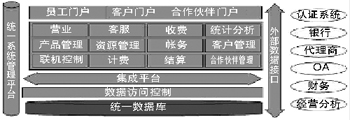 整個系統(tǒng)采用了基于J2EE架構的n層分布式體系結構,同時引入了中間件等技術,實現(xiàn)了用戶界面和業(yè)務處理邏輯之間的分離。軟件設計采用了構件化、參數(shù)控制和軟件總線等技術,便于系統(tǒng)擴展,支持新業(yè)務的推出。