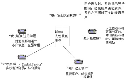基于CTI(電信和計算機(jī)集成)技術(shù)和call center(呼叫中心)技術(shù)的INtess客戶服務(wù)平臺,積累網(wǎng)上600多套設(shè)備業(yè)務(wù)開發(fā)和運(yùn)行實(shí)踐的經(jīng)驗(yàn),運(yùn)用專業(yè)化的設(shè)計,全面解決電信客戶服務(wù)中的難題: