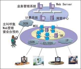 運(yùn)營支撐層與視訊交換層可以兼容各個(gè)視訊終端生產(chǎn)廠家提供的滿足標(biāo)準(zhǔn)的終端,在視訊實(shí)現(xiàn)層為電信運(yùn)營商的客戶提供多種方便的預(yù)約手段,并推出“主叫呼集”功能,使用戶能夠方便地自主召集各種視訊業(yè)務(wù)!耙豢ǘ嗵(hào)”方便用戶付費(fèi)、使用;全面的級連MCU主席控制能力使用戶能靈活操縱視訊業(yè)務(wù)的進(jìn)行!爸鹘泻艏、“一卡多號(hào)”等功能的提供,使復(fù)雜的視訊業(yè)務(wù)真正成為電信運(yùn)營商滿足大客戶、適應(yīng)電信市場發(fā)展的“傻瓜化”業(yè)務(wù)。