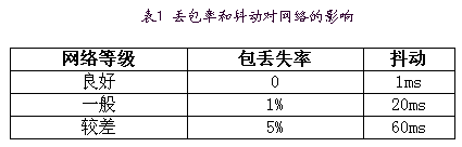 一般根據(jù)丟包率和抖動將網(wǎng)絡(luò)分為三級,見表1。