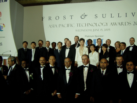 新加坡CommunicAsia2005展會期間,2005年6月15日晚—新加坡香格里拉飯店燈火輝煌,全球通信行業(yè)的精英公司濟濟一堂,共同見證了亞太地區(qū)一年一度的Frost & Sullivan亞太區(qū)技術大獎的頒獎禮的盛況。晚會期間共產生了6項運營商獎項和11項供應商獎項。