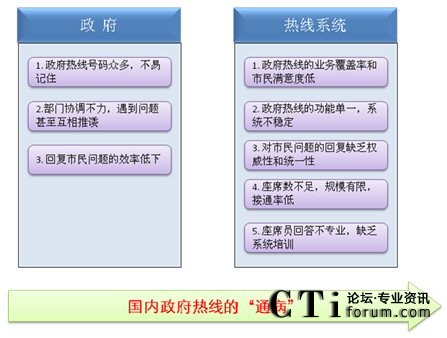 深圳市原有政府熱線所反映的問題并非孤立,由于時(shí)代和技術(shù)的局限性,國(guó)內(nèi)其它的一些政府熱線也同樣面臨著諸多問題,具體如下: