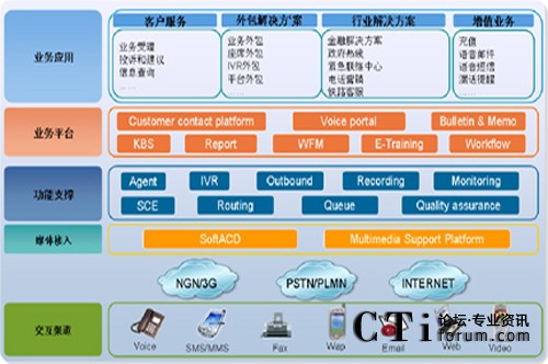 華為多媒體聯(lián)絡(luò)中心解決方案標(biāo)準(zhǔn)版采用的是基于華為NGN架構(gòu)的下一代多媒體接入設(shè)備UAP3300,寬窄帶一體化設(shè)計,可接入PSTN/PLMN、NGN/3G網(wǎng)絡(luò),符合長期演進(jìn)要求。單臺可支持240座席,在6U的高度內(nèi)內(nèi)置寬窄帶中繼接入和錄音、放音、傳真等媒體資源處理能力,無需外置媒體服務(wù)器和中繼網(wǎng)關(guān),并支持TTS和ASR功能。