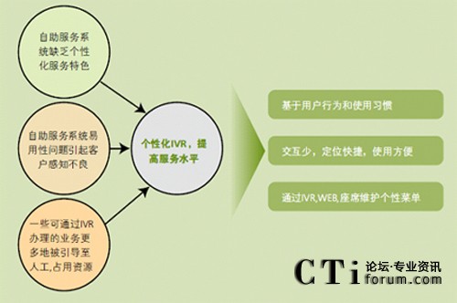最終用戶可以提取常用業(yè)務(wù)定制自己的IVR菜單,減少語音提示和操作步驟,獲取服務(wù)更為準(zhǔn)確快捷,提升了業(yè)務(wù)受理效率,降低了對系統(tǒng)的占用時間。自動業(yè)務(wù)流程隨著最終用戶對受理業(yè)務(wù)需求的變化,運(yùn)行效率也會隨之變化,系統(tǒng)將對自動業(yè)務(wù)流程的所有節(jié)點(diǎn)進(jìn)行跟蹤分析,根據(jù)效率最大化原則對業(yè)務(wù)節(jié)點(diǎn)進(jìn)行排序和調(diào)整。這些細(xì)節(jié)的改進(jìn),可以最大限度地降低每次交互占用的時間,提升了客戶滿意度,降低了交互成本。