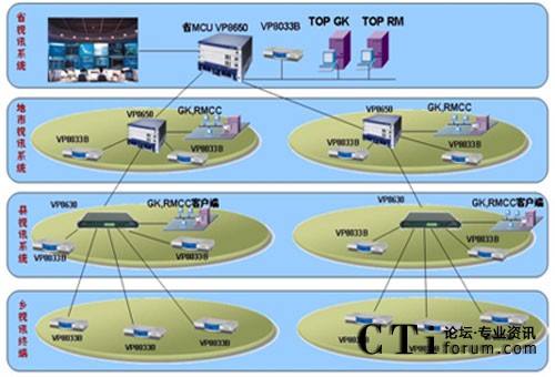 這是目前國(guó)內(nèi)最大的政府應(yīng)急視頻會(huì)議指揮系統(tǒng),現(xiàn)網(wǎng)可以借鑒的經(jīng)驗(yàn)很少,華為公司充分意識(shí)到該項(xiàng)目的重大意義,投入大量人力物力進(jìn)行網(wǎng)絡(luò)環(huán)境調(diào)研和客戶(hù)需求分析,經(jīng)過(guò)眾多專(zhuān)家和工程人員的反復(fù)論證,最終該套系統(tǒng)采取了分布式三級(jí)級(jí)聯(lián)組網(wǎng)結(jié)構(gòu)和四級(jí)分級(jí)分權(quán)管理模式,具有強(qiáng)大的備份能力和豐富的功能特性,在省和9個(gè)地市分別配置1臺(tái)8650MCU和1套管理軟件,在58個(gè)縣分別配置1臺(tái)8630 MCU,在1205個(gè)會(huì)議室分別配置1臺(tái)8033B終端。
