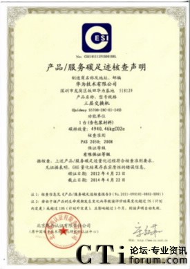 華為獲得國(guó)內(nèi)第一張交換機(jī)產(chǎn)品碳足跡認(rèn)證證書