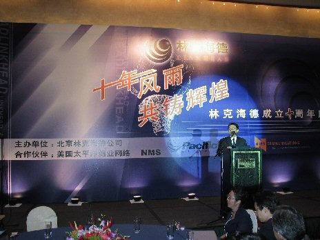 2004年6月10日,林克海德公司在昆侖飯店迎來了十年華誕,林克海德的新朋老友歡聚一堂,齊唱同一首歌。美國NMS總裁Bob,太平洋網(wǎng)絡(luò)總裁Tony都遠(yuǎn)程趕來祝賀。在過去的十年中,林克海德見證了中國電信增值業(yè)務(wù)領(lǐng)域從無到有、從簡單的語音信箱到目前斑斕多彩的彩信業(yè)務(wù)的發(fā)展歷程,被譽(yù)為國內(nèi)板卡市場的旗艦,F(xiàn)在隨著中國通信領(lǐng)域電信增值業(yè)務(wù)的發(fā)展,林克海德憑借語音增值業(yè)務(wù)方面的豐富經(jīng)驗(yàn),成為業(yè)內(nèi)知名的語音、傳真、數(shù)據(jù)等多媒體業(yè)務(wù)開發(fā)平臺(tái)的提供商和系統(tǒng)方案服務(wù)商,林克海德公司走進(jìn)了新的語音時(shí)代!