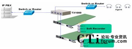 我們知道,現(xiàn)在好多客戶對(duì)傳統(tǒng)鏈路的數(shù)字話機(jī)錄音方案十分了解,這主要得益于數(shù)字話機(jī)錄音時(shí)可以將一些主被叫等信息能過(guò)錄音板卡的D信道傳給用戶調(diào)用。那么現(xiàn)在的IP錄音方案也有多種,但不外乎兩大類,一類是純軟模式,一類是硬件模式。
