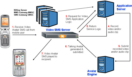 化身引擎 — 化身引擎的一個(gè)關(guān)鍵功能是接收來自應(yīng)用服務(wù)器的音頻片斷,并采用復(fù)雜的算法對語音消息和化身圖像的唇動(dòng)進(jìn)行同步,處理后的結(jié)果就是一段“正在說話”的化身視頻。處理文件被發(fā)送回應(yīng)用服務(wù)器,在視頻SMS服務(wù)器存取這些視頻文件進(jìn)行播放之前,這些文件將被存放在應(yīng)用服務(wù)器上。