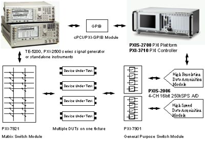 PXI控制器并搭載了Pentium III處理器。使用者可以自眾多PXI訊號產(chǎn)生模塊選擇所需,或搭配外接式儀器透過PXI-GPIB控制卡聯(lián)機(jī)。被測物(DUT)產(chǎn)生的特性參數(shù)、傳遞函數(shù)或時(shí)域信號,可采用PXI-2000、TE-6100等高性能數(shù)據(jù)擷取卡進(jìn)行采樣。而后藉由ADLINK