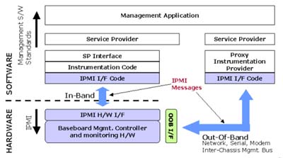 由圖二我們可以看出,IPMI的界面以及上層的管理都需求一些軟件來支持,以下將簡(jiǎn)略的描述IPMI所涉及到的軟硬件種類:
