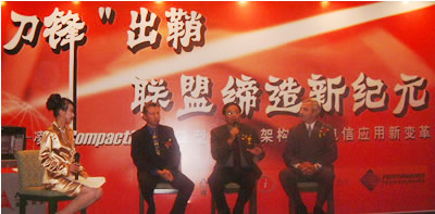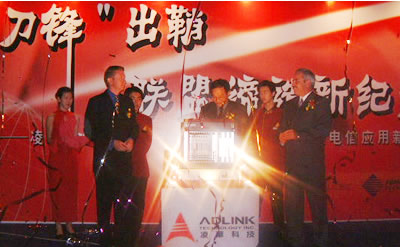 2002年9月19日,凌華科技于北京長(zhǎng)城飯店舉辦“刀鋒出鞘、聯(lián)盟締造新紀(jì)元” 新聞發(fā)布會(huì),記者會(huì)中凌華科技除宣布與國(guó)際電信設(shè)備知名廠商Interphase、Performance Technologies策略聯(lián)盟外,凌華亦發(fā)表全世界速度最快的PICMG2.16電信級(jí)刀鋒服務(wù)器,透過(guò)相互的搭配合作,將針對(duì)客戶(hù)提供電信暨網(wǎng)絡(luò)應(yīng)用領(lǐng)域之完整解決方案。凌華科技董事長(zhǎng)劉鈞先生、Interphase區(qū)域負(fù)責(zé)人Mr. Antony Chapman、Performance Technologies行銷(xiāo)業(yè)務(wù)副總Mr. Martin McFadden、中國(guó)工控領(lǐng)域?qū)<彝瑫r(shí)亦是PICMG中國(guó)協(xié)會(huì)會(huì)長(zhǎng)魏慶福教授、以及北京郵電大學(xué)宋俊德教授皆共襄盛舉,出席此次成功的記者發(fā)布會(huì)。