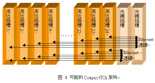 高可靠度CompactPCI 系統(tǒng)的下一步發(fā)展將是去除系統(tǒng)插槽(system slot);因為應用程序利用現(xiàn)今系統(tǒng)的IP互聯(lián),PCI總線逐漸成為派不上用場的費用。PICMG協(xié)會現(xiàn)正進行CompactTCA的規(guī)格制訂,CompactTCA規(guī)格可望結合AdvancedTCA(PICMG