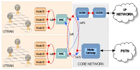 UTRAN為用戶端的移動電話、其它無線設(shè)備(如PDA, 便攜計(jì)算機(jī)等)提供到有線網(wǎng)絡(luò)的連接,它包括B節(jié)點(diǎn)(Node