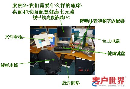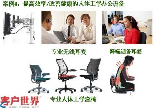 還有一個話題是健康座席怎么去配備,我主張七個元素,這個是在英國學(xué)到的,英國的話務(wù)員他們每個人都干到40歲,他們可以從20歲-40歲還沒有厭倦這個行業(yè)和崗位,他們認(rèn)為這個工作不是天天疲于應(yīng)付,或者說強度非常高而產(chǎn)生很大壓力的工作,他們很熱愛自己的工作,你看他們有很舒服的座椅,還有腳墊,女孩子如果注意保養(yǎng)自己身材的話,要經(jīng)常有機(jī)會站起來,保持一種站立狀態(tài)去工作,包括有一些電扇、健康的鼠標(biāo)、鍵盤、降噪耳機(jī),等等,包括視頻顯示液晶屏都可以讓客服代表享受輕松的工作感受,不會因為疲勞而產(chǎn)生厭倦,這種厭倦來的非常晚,當(dāng)一個員工在一個新的崗位工作超過一年以后,在他的厭倦感來臨之前我們已經(jīng)幫他調(diào)整好這種心態(tài)和適應(yīng)力,可能他的厭倦感會一直不來,這樣的話我們就可以很長時間保有一個有經(jīng)驗的優(yōu)秀客服代表,為公司節(jié)省很多成本,這樣的工作是非常舒服的。