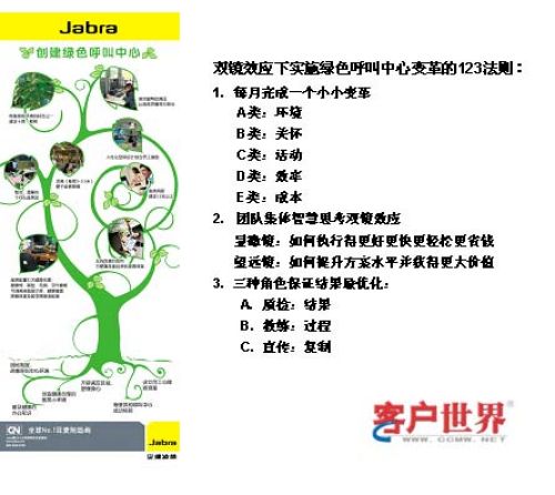 我之前在講綠色呼叫中心的時候,也是說通過這些觀察和一些提煉發(fā)現(xiàn)我們在真實生活中,如果從一些新的角度去看待我們現(xiàn)在的工作,其實就會發(fā)現(xiàn)環(huán)境可以在眾多的競爭對手中脫胎換骨成為跟別的呼叫中心不一樣的核心競爭力。