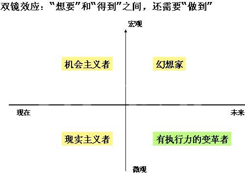 第一種右上角是“幻想家”,把目前工作的重點放在宏觀的角度,不斷憧憬未來,宏觀的理論滔滔不絕,只有理念無法落地實施,到頭來還是流于紙上談兵。
