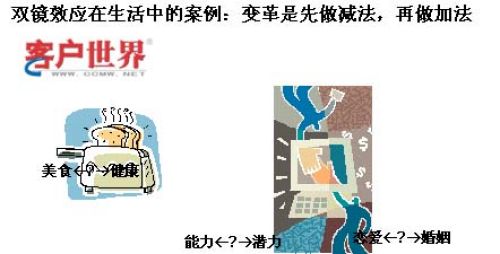 雙鏡效應(yīng)在我們生活中其實無處不在,你善于用顯微鏡倒觀察生活細(xì)節(jié),再用望遠(yuǎn)鏡去看生活的遠(yuǎn)景,兩個鏡子放在一起就可以把我們自己的生活規(guī)劃得很好。