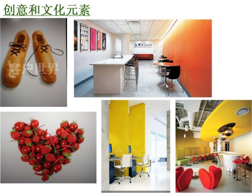 左下邊的這個圖是我自己非常喜歡的,就是在一個咖啡館里面,用一些番茄、一些小的辣椒和一些草莓搭成這樣一個形狀。上面大家看是鞋子,其實是兩塊面包把中間挖空了,鞋帶是巧克力,用這種方式來調(diào)動別人在咖啡館里面的食欲。我們在話房里面是一樣的,要讓客服代表,特別是那個年齡段20-25歲之間年輕的男孩子和女孩子們喜歡,甚至他們有一種重回學(xué)校的感覺都可以。所以這里面不用花太多的心思可以有很好的創(chuàng)意。在這個話房的設(shè)計當(dāng)中,覺得從環(huán)境的角度和自己能夠著手去改變的角度來看,已經(jīng)可以把你得話房做出自己的特色,就像我們在自己家里裝修一樣,可以有不同的色彩,也可以由不同的結(jié)構(gòu),當(dāng)然需要滿足公司給你預(yù)算的要求。