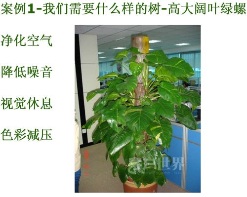 我現(xiàn)在講的是一些案例,這些案例發(fā)現(xiàn)當(dāng)我們用顯微鏡的角度去看,我們今天已經(jīng)可以做到,立刻就可以做到的事情是在話房安放很多棵樹,推薦綠蘿,這是我看到的最優(yōu)秀的一棵綠蘿,為什么說它很優(yōu)秀呢?因為它是吊頂?shù),頂天立地的一棵樹,樹的好處四大功能分別是凈化空氣、降低噪音、視覺休息,用色彩減低自己的壓力。今天咱們的會議室里面只有這么一個小的樹,我相信大家一定會疲勞是很正常的,因為我想過在家里面放這些的樹,我和我老公商量我們要放這棵樹,開始是被他批判的,雖然他現(xiàn)在還沒有完全接受,我還是會說服他去做這件事情,大家可以試一下,你的話房里面平均10個話務(wù)員放一棵樹,你會覺得他們感覺一下就會出來。