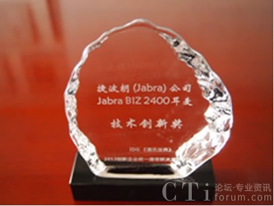 CTI論壇(ctiforum)6月18日消息(記者 楊佳林):由國際知名媒體集團IDG旗下《通訊世界》雜志聯(lián)合通訊世界網(wǎng)(cww.net.cn)聯(lián)合主辦的“2012創(chuàng)新企業(yè)統(tǒng)一通信解決方案評選”日前揭曉,全球創(chuàng)新耳麥解決方案制造商捷波朗生產(chǎn)的Jabra BIZ™ 2400耳麥榮膺“技術創(chuàng)新獎”,該獎項旨在認可統(tǒng)一通信領域引領行業(yè)前端發(fā)展的創(chuàng)新產(chǎn)品。