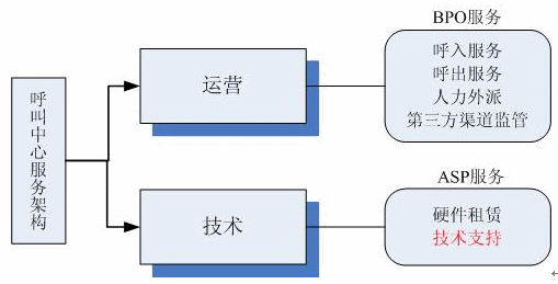 如上圖所示,運(yùn)營(yíng)和技術(shù)是呼叫中心最核心的兩大板塊。BPO(Business Processing Outsouring) 服務(wù),就是我們所說(shuō)的商業(yè)流程外包,對(duì)于呼叫中心市場(chǎng)來(lái)說(shuō),已經(jīng)發(fā)展得相對(duì)成熟,市場(chǎng)上各大外包呼叫中心都可以為企業(yè)提供全面的BPO外包服務(wù),僅限于提供服務(wù)的能力和提供服務(wù)質(zhì)量不同。BPO服務(wù)幫助企業(yè)的項(xiàng)目管理人員節(jié)約管理時(shí)間、節(jié)約成本開(kāi)銷(xiāo)、節(jié)約項(xiàng)目開(kāi)銷(xiāo);而ASP服務(wù)又能為企業(yè)帶來(lái)什么呢?從技術(shù)層面上講,ASP服務(wù)內(nèi)容包含了硬件和軟件兩大塊,但是人們往往忽視了ASP服務(wù)在軟件技術(shù)支持方面的應(yīng)用。如果說(shuō)BPO服務(wù)解放了企業(yè)的項(xiàng)目管理人員,那么ASP服務(wù)的技術(shù)支持則幫助企業(yè)的技術(shù)人員從繁瑣的技術(shù)支持中解放出來(lái)。