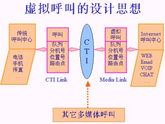 由于有了這種“虛擬呼叫”的技術(shù),CTI平臺才能夠?qū)?shí)際的電話呼叫和來自Internet的訪問進(jìn)行統(tǒng)一的處理。這是一種完整意義上的將傳統(tǒng)呼叫與Internet訪問完美結(jié)合的設(shè)計(jì)思想。