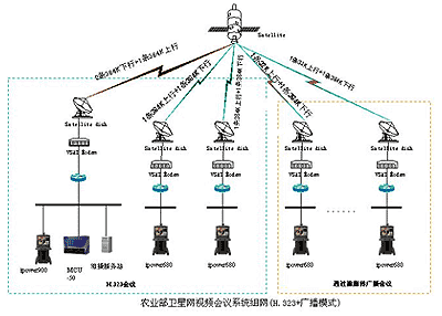 此次農(nóng)業(yè)部視頻會議網(wǎng)是構(gòu)建在基于衛(wèi)星網(wǎng)的IP網(wǎng)絡(luò)應(yīng)用環(huán)境中,這是寶利通中國公司首次為客戶建設(shè)運行于衛(wèi)星網(wǎng)上視頻會議系統(tǒng)。系統(tǒng)構(gòu)建于基于ITU
