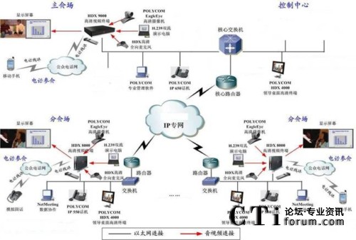 - 替代原有的H.320視頻會(huì)議系統(tǒng),建設(shè)成基于IP網(wǎng)絡(luò)的H.323交互式視頻會(huì)議系統(tǒng)。